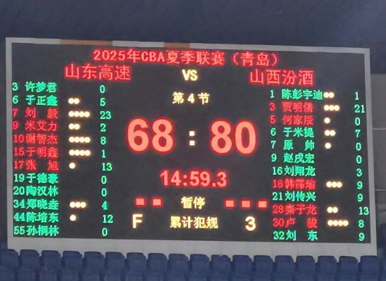 半场结束时,山东男篮已经从领先变为落后,以39比44落后对手5分。易边再战,两队在进攻端均出现“断电”。山东男篮单节仅得13分,山西队也只有12分进账。第三节结束时,山东队仍然落后4分。末节决战,山西队再次发力,单节拿下24分,而山东队只得到16分,最终以12分之差落败。