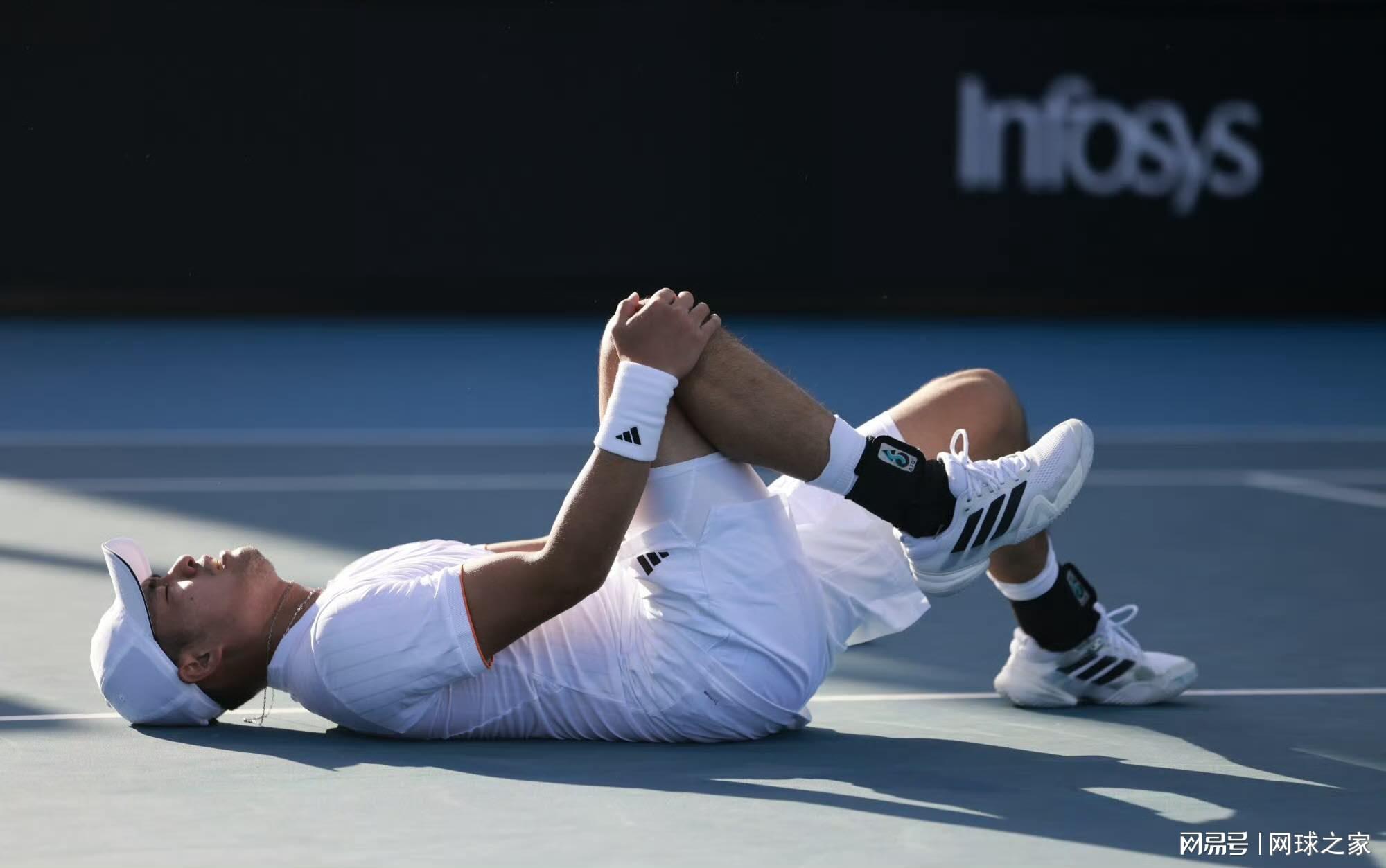 与此同时,在一场男子单打比赛中,中国选手吴易昺与斯皮泽里上演了五盘大战。在连续输掉前两盘后,吴易昺顽强反击,通过抢七赢下第三盘,又以6-4拿下第四盘,将比赛拖入决胜盘。决胜盘战至2-3,吴易昺的发球局40-40平分关键时刻,一个Ace球落地时,他感到腰部不适——腰好像有点撑到了,随后发出了双误。紧接着,他在落地时未能站稳,导致右腿开始抽筋,随后左腿和腹肌也接连抽筋,最终以3-6输掉决胜盘。
