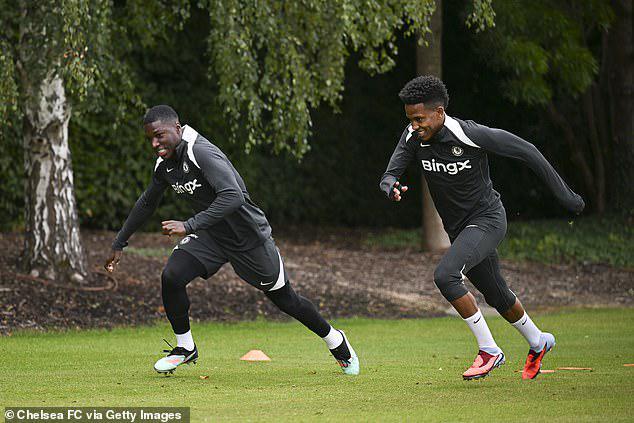 传球模式反复演练,涉及假人的移动训练,以及进攻配合练习,其中若昂-佩德罗会突然插上并在斯沃尼纳(切尔西第三门将)面前完成射门得分。